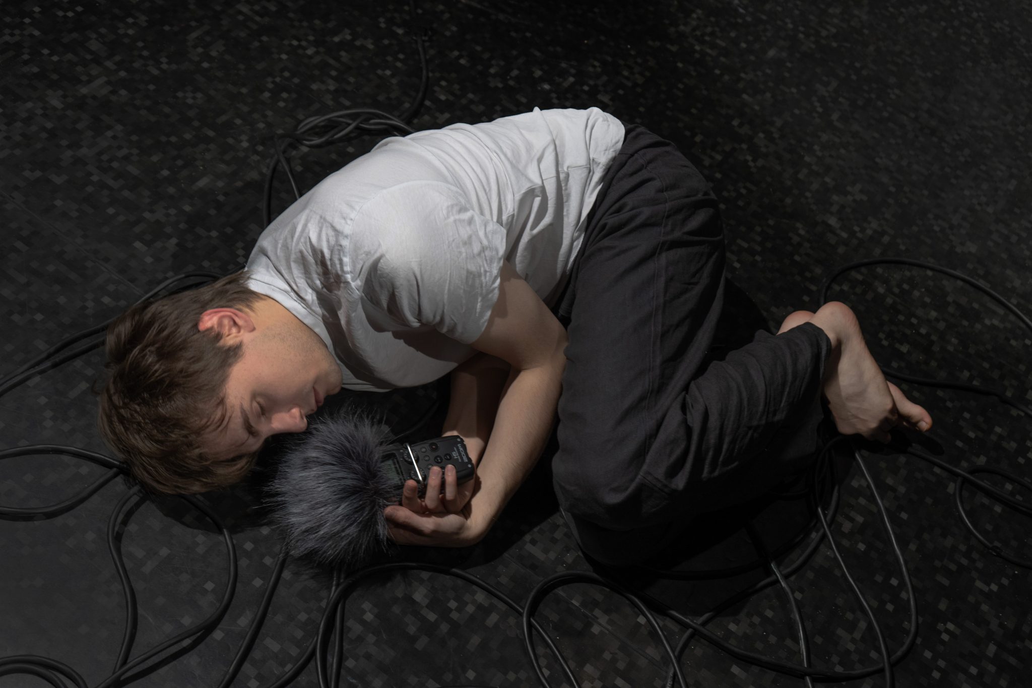 Inspired by Gustav Mahler’s song “Ich bin der Welt abhanden gekommen”, we enter a world of silence, which is not the absence of sound. We ask what silence sounds like and what hides inside its apparent emptiness. In this meditation onstage, we listen to microsounds, the trembling of the body, and to what remains unspoken. Broken sentences, frozen thoughts, and emotions become songs that can be heard only in silence.