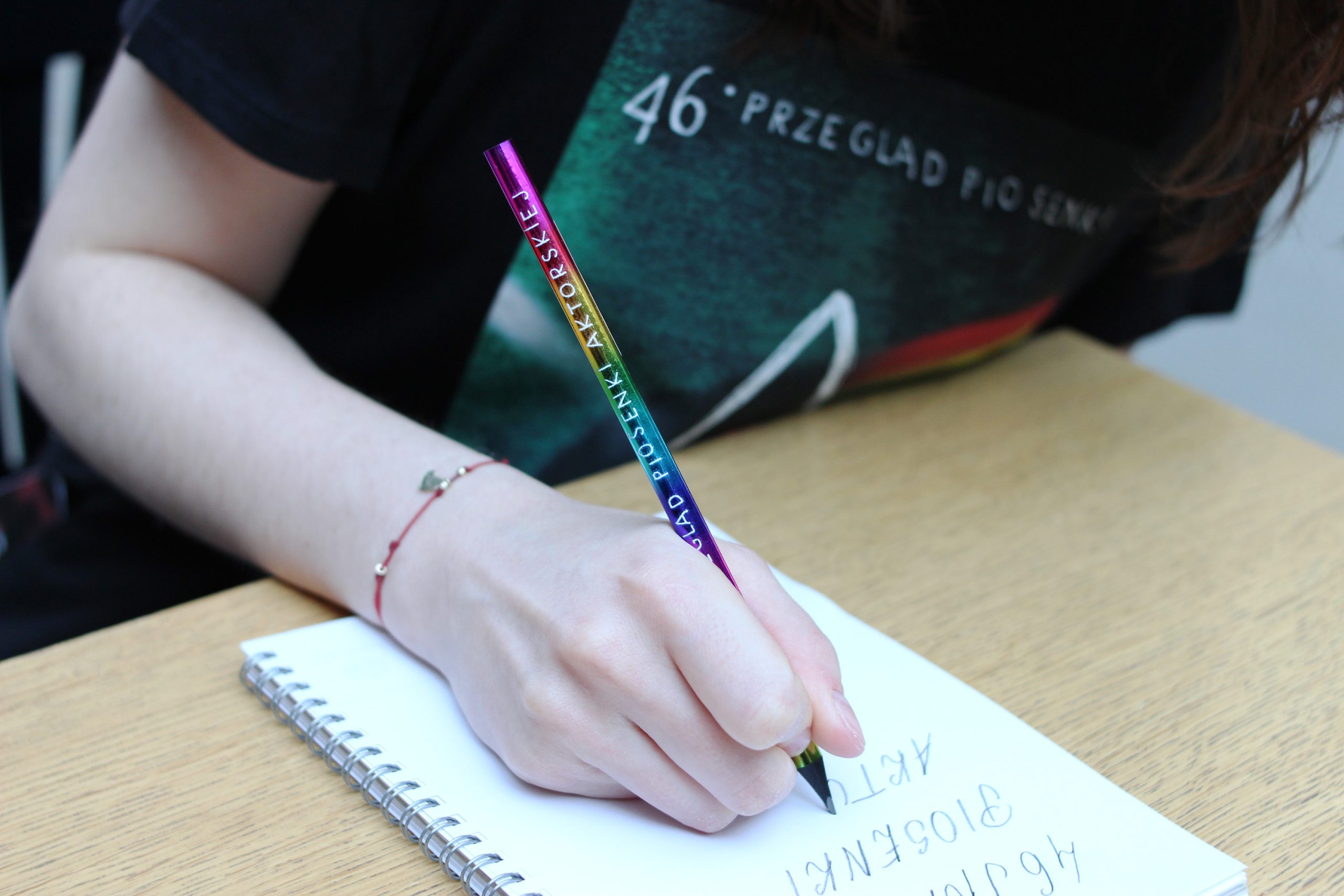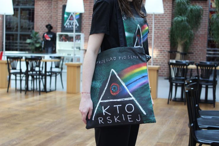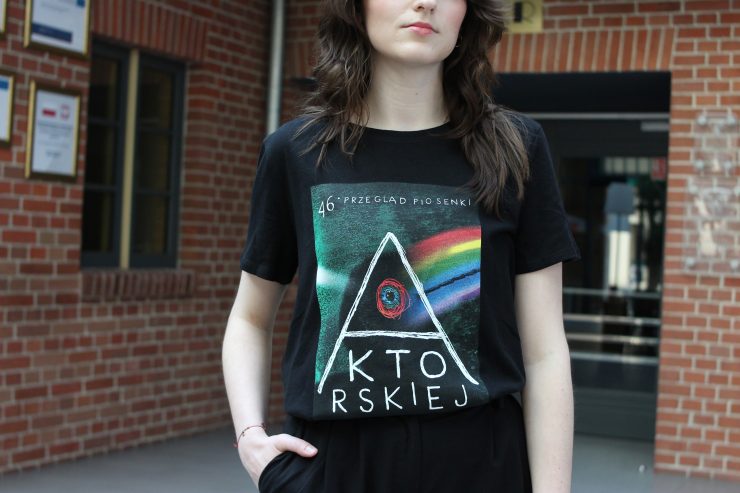 W naszym sklepiku można już kupić festiwalowe gadżety: damskie i męskie koszulki, torbę, przypinkę, magnes, smycz na telefon, katalog oraz tęczowy ołówek.