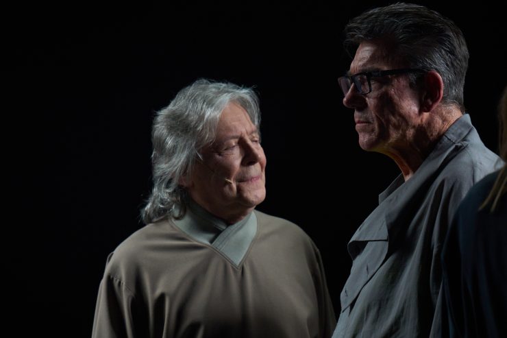 Oto iluzja kosmicznego porządku, której doświadczamy, gdy zapomnimy o oczywistości ustaleń Kopernika: gołym okiem widać przecież, że to Słońce kręci się wokół Ziemi, a my jesteśmy centrum wszechświata. Postaci kreowane przez aktorów umiejscowionych na obrotowej scenie – jak i my w tej wersji naiwnej – też wierzą w złudzenie, że to świat się obraca, nie oni.