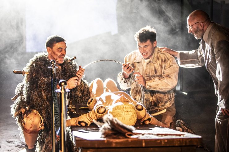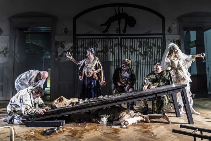 Poza ariami i ansamblami Moniuszki aktorzy i aktorki nie wypowiadają ani jednego słowa, prowadząc widzów przez makabrycznie piękne muzeum polskich cierpień. Co dzisiaj straszy w „Strasznym dworze”? Czy społeczeństwo z zapisanym w genotypie doświadczeniem wojny jest w stanie wytworzyć mechanizmy obronne wobec dzisiejszych zagrożeń? Czego się tak bardzo boimy?